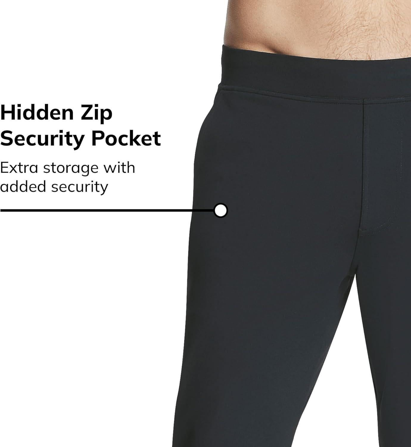 Elevate your athletic wardrobe with these Performance Slip-ins Recharge Classic Knit Pants. Perfect for men's clothing enthusiasts seeking both style and function, these mens sweatpants combine comfort and versatility. The relaxed fit design features an elastic waistband with drawcord for a customizable fit, while multiple pockets including front slash pockets, back flap pockets, and a hidden security zipper pocket provide practical storage. Made with 88% Nylon and 12% Spandex, these sweatpants for men offer moisture-wicking and quick-dry properties with UPF 40+ protection for all-day comfort.