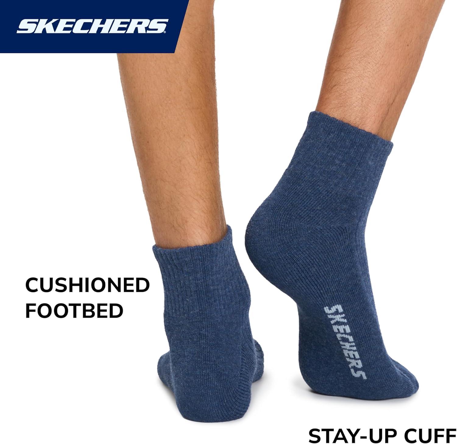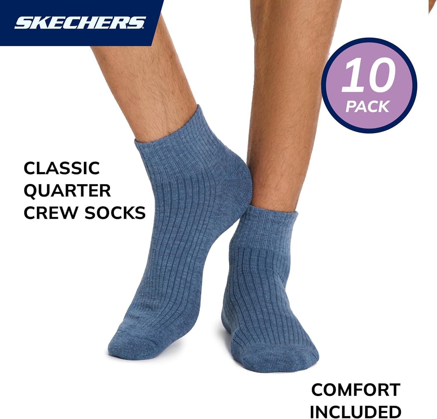 Skechers Men’s Half Terry Quarter Crew Socks (10-Pack)(Blue Combo/Grey Heather)