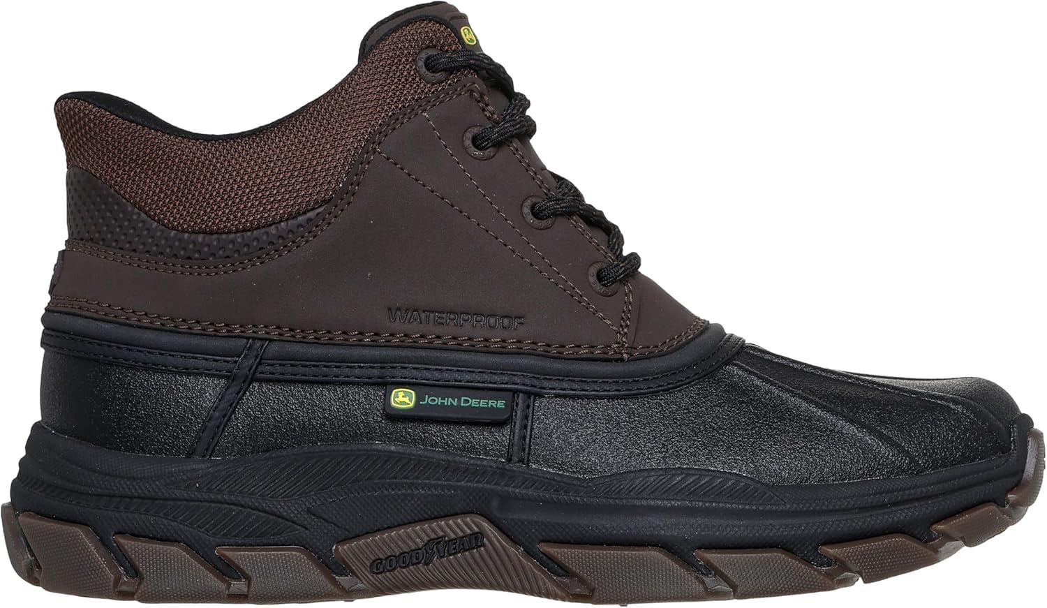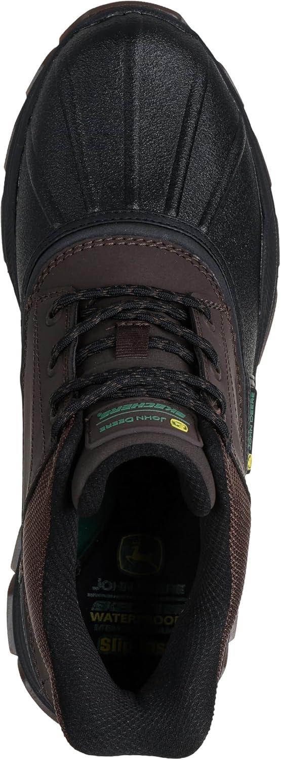 Experience the perfect blend of durability and comfort with these John Deere Waterproof Duck Boots. These slip on shoes for men combine iconic American craftsmanship with innovative Hands Free Slip-ins technology. Featuring a leather and synthetic upper with adjustable laces, Air-Cooled Memory Foam insole, and anti-slip Goodyear Rubber Outsole for enhanced traction. Perfect for work, outdoor activities, and casual wear, these boots deliver uncompromising durability with all-day comfort.