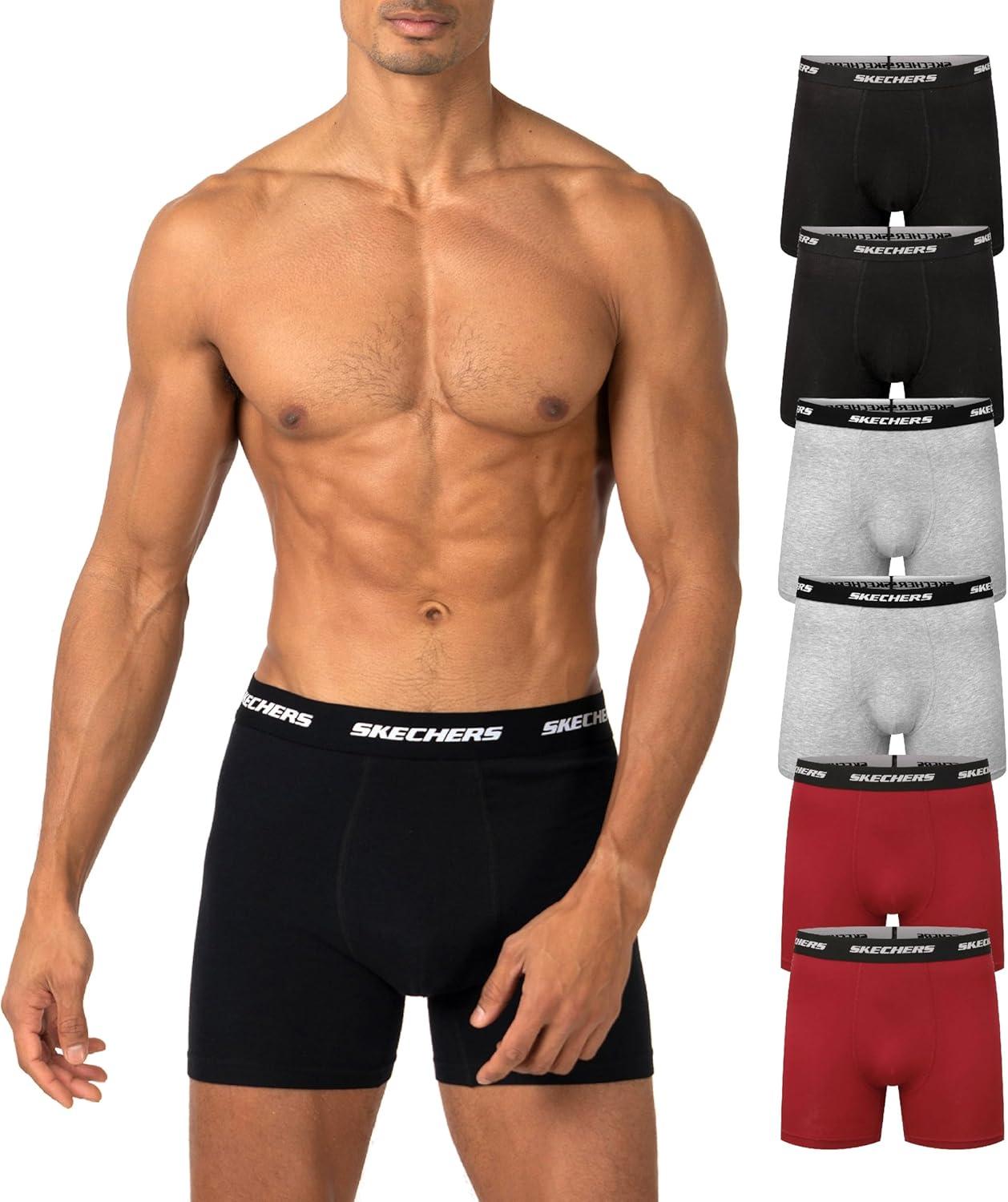 Skechers Men’s Underwear Boxer Briefs 6-Pack, Contoured Pouch, Moisture Wicking, No Ride Comfort, Breathable Cotton(Dark Grey/Red/Black)