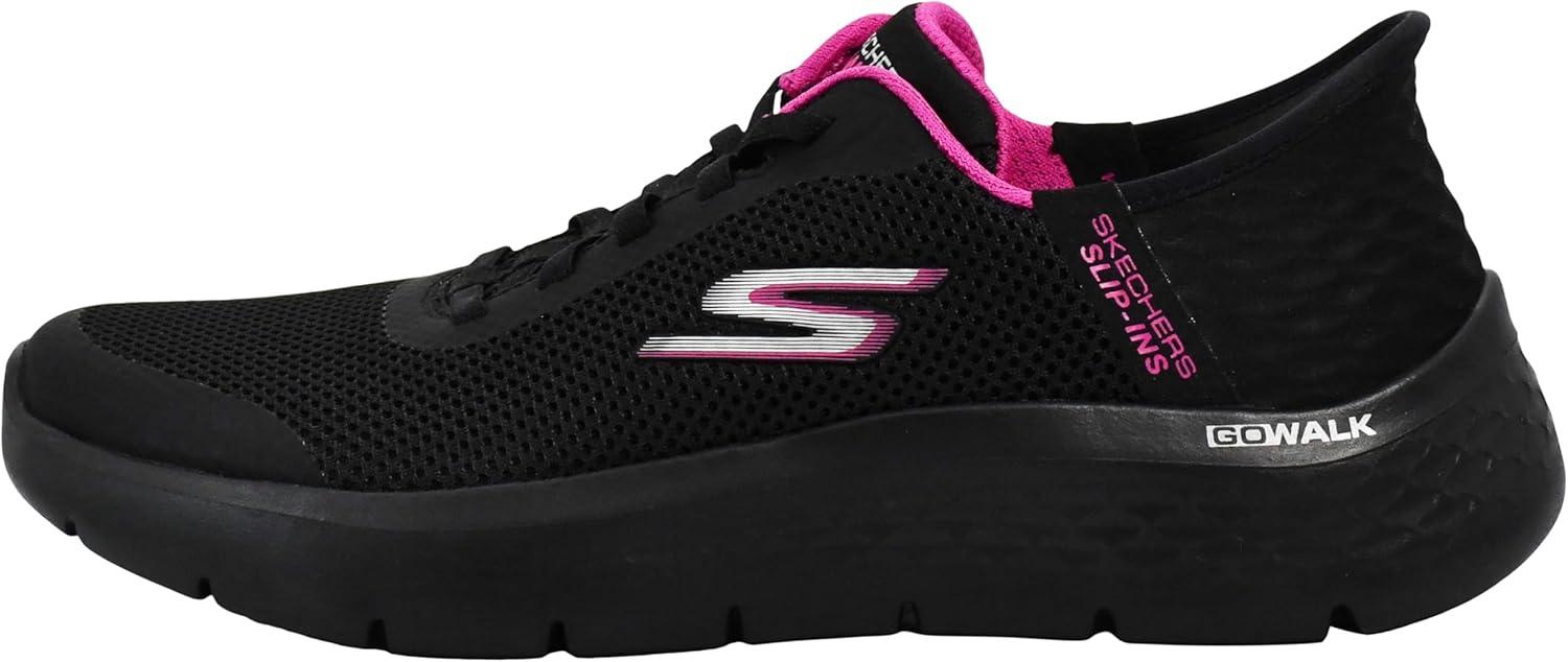 Skechers Womens Go Walk Flex Hands Free Slip-ins-Grand Entry Sneaker(Black/Hot Pink)