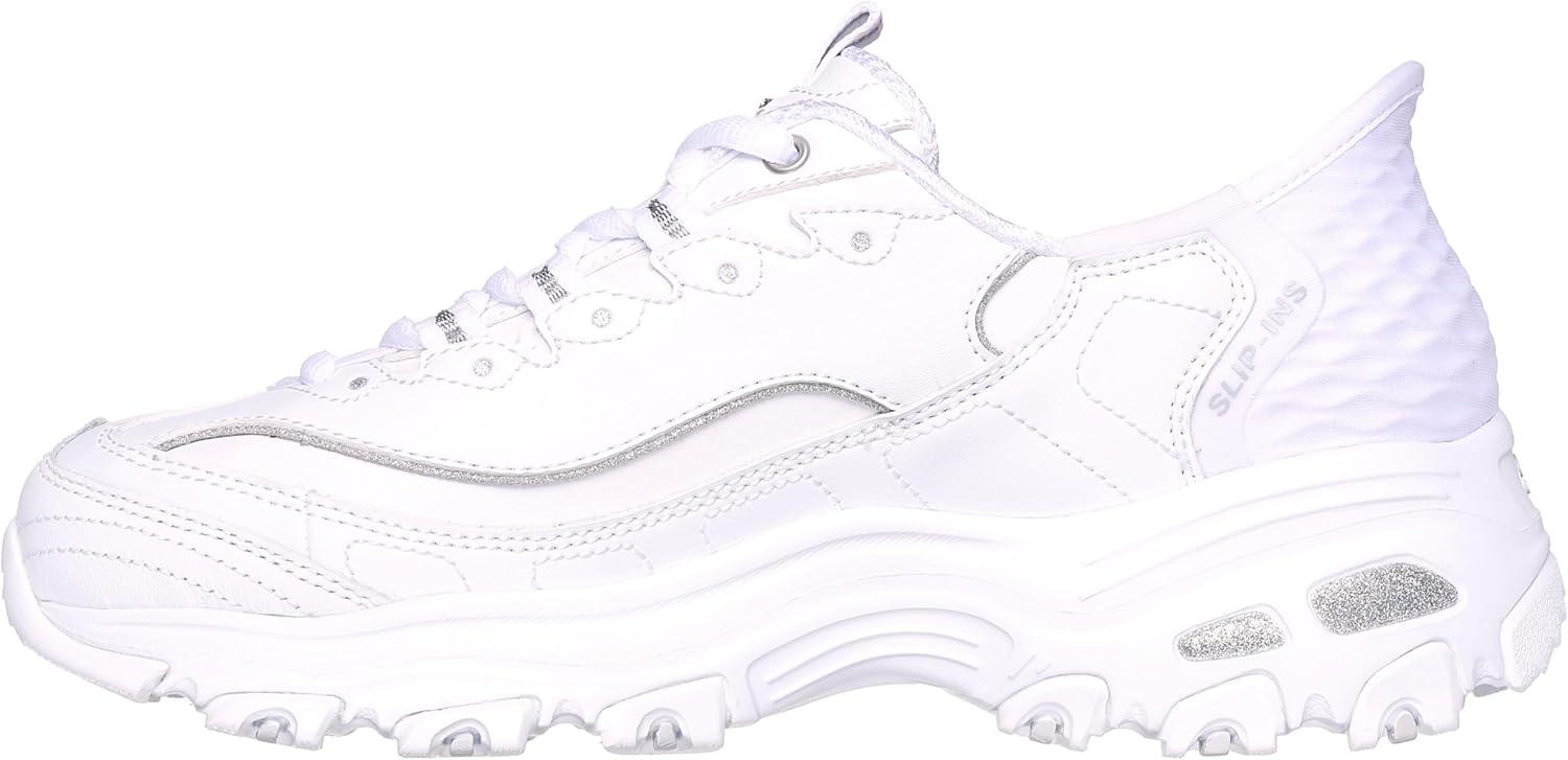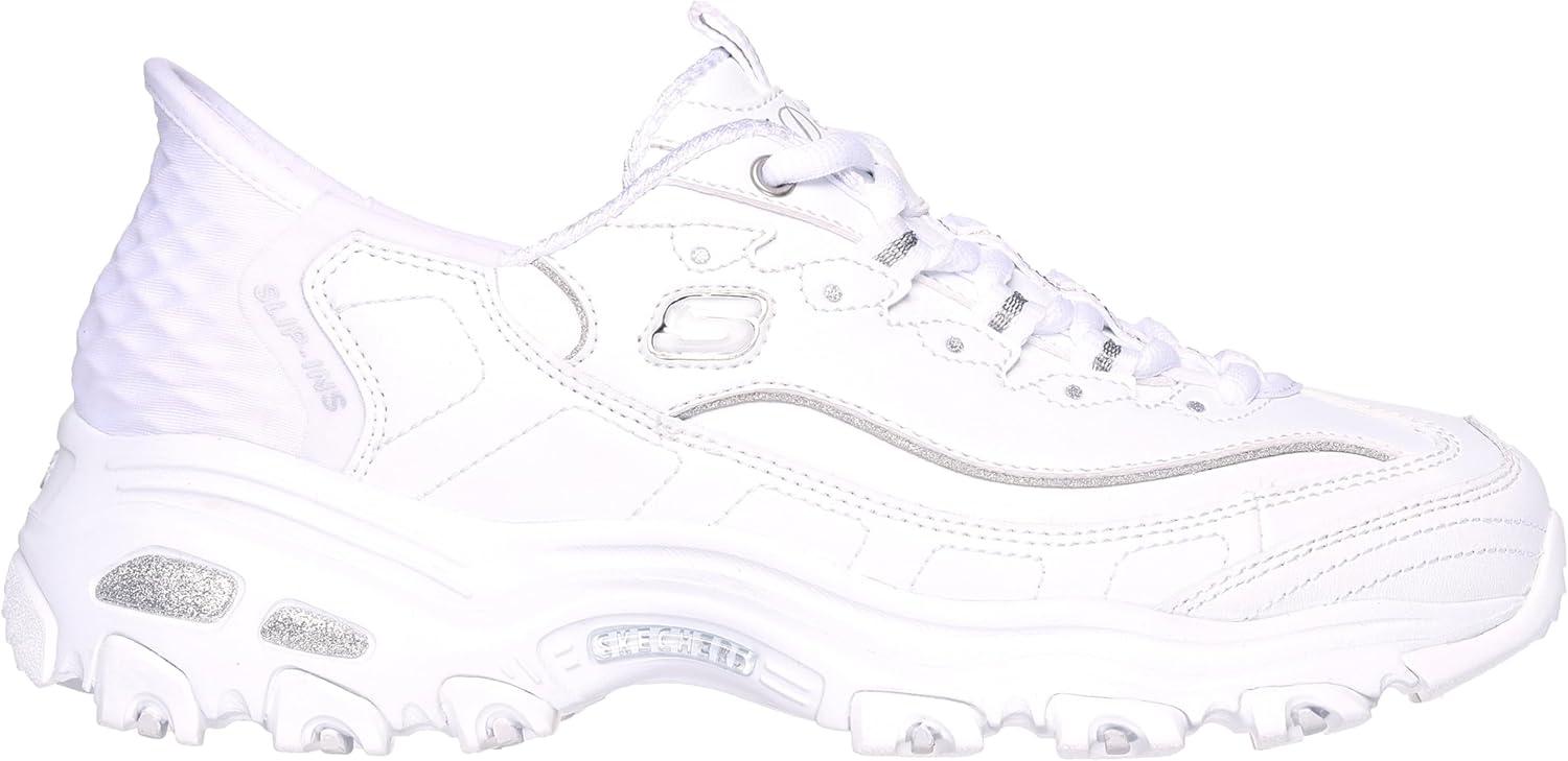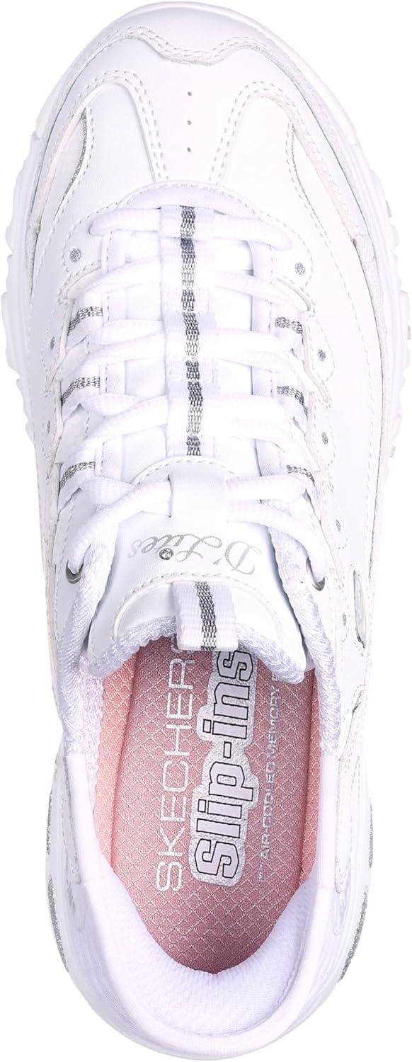Skechers Womens Hands Free D’Lites New ClassicSneaker(White/Silver)