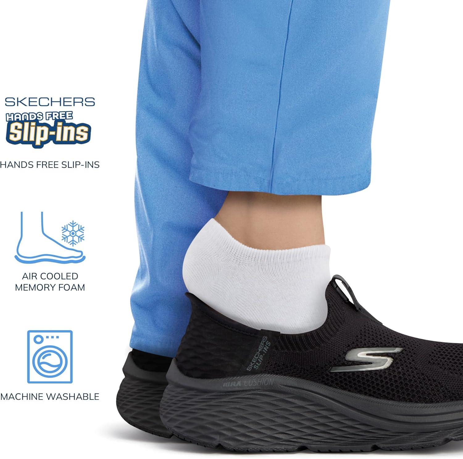 Experience the next movement in maximum cushioning with Skechers Hands Free Slip-Ins: maximum cushioning Elite 2.0 – Eternal. Designed with our exclusive heel cushion, this lace-up style features a stretch fit knit upper, copper-infused air-cooled memory foam insole, ultra-go padding, and hands-free Skechers slip-in heel insert.