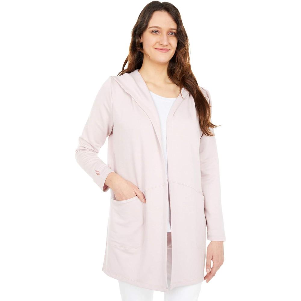Elevate your casual wardrobe with this versatile thigh-length hoodigan, perfect for clothing enthusiasts seeking both style and comfort. This jackets for women essential features luxuriously soft French terry fabric that delivers a silky-smooth feel against your skin. The relaxed slouchy fit and deep hand pockets create a laid-back yet sophisticated silhouette, while the open-front design offers effortless layering options. Made with a premium rayon blend fabric, this hoodigan provides the perfect balance of comfort and style for any occasion.